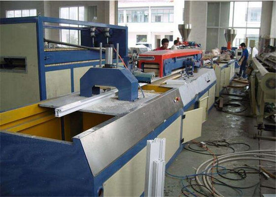 1. Plastic profile production line is using PVC material and it is applied to produce PVC window door frame profile,PVC ceiling panel profile,PVC cable trunking profile by changing different mould. This production is composed of conical twin-screw extruder,mould,vacuum calibration table, haul-off, cutter and stacker.